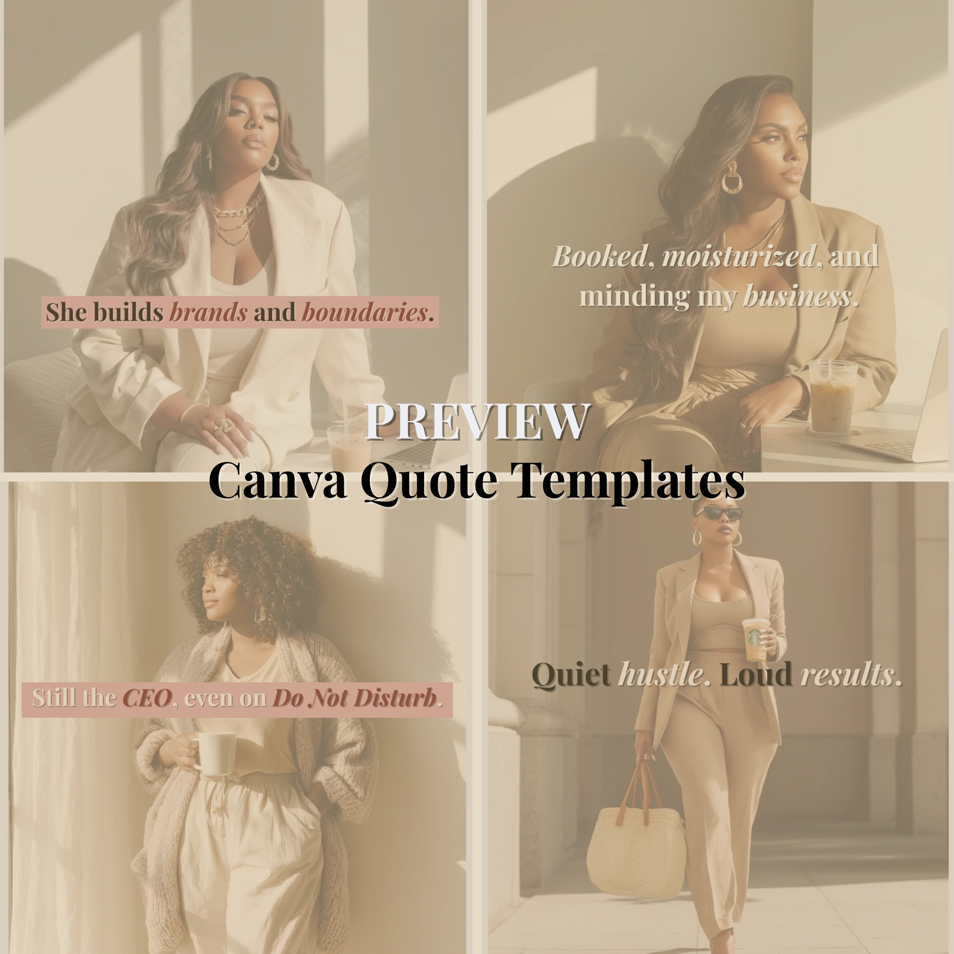 This collection was made for content creators, coaches, service providers, and digital entrepreneurs who want to elevate their brand without the burnout. With a perfect balance of confidence and calm, this curated image + quote pack gives you everything you need to post with ease, style, and intention.